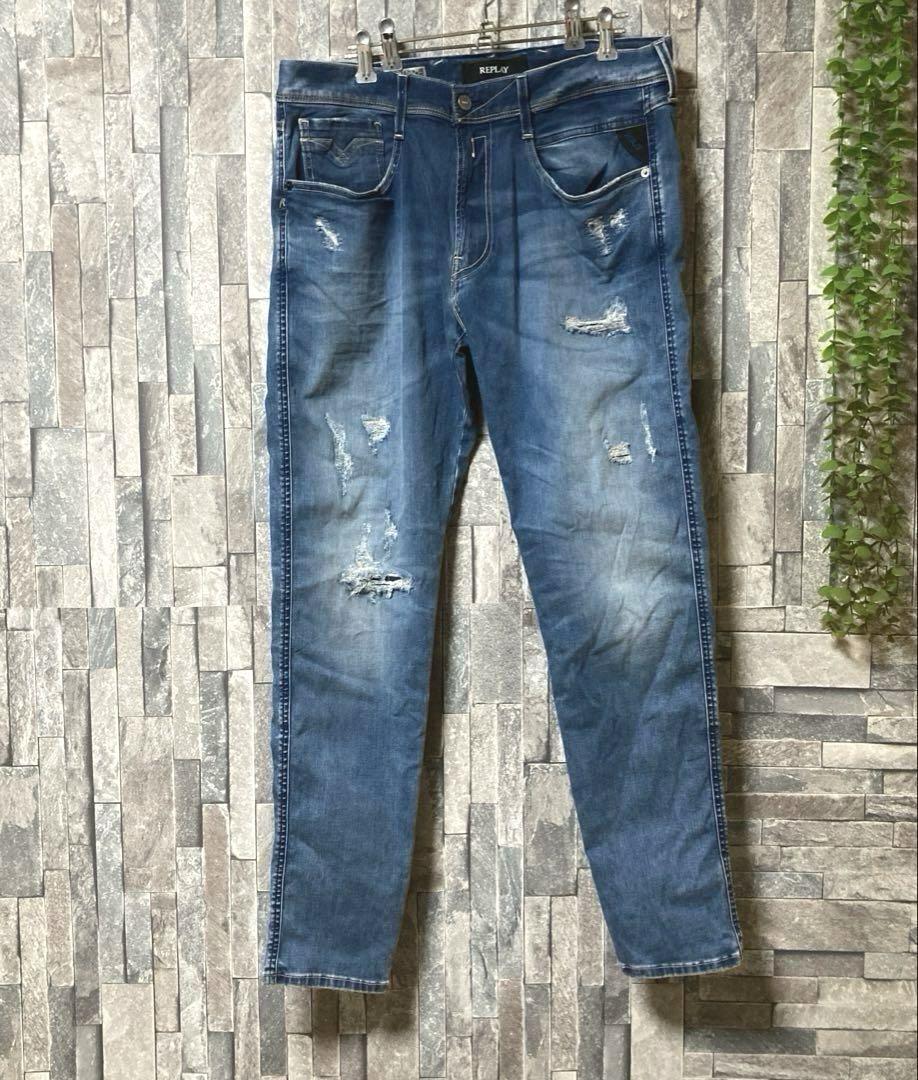 - 美品【REPLAY】ハイパーフレックスデニム ダメージ ストレッチ W34
