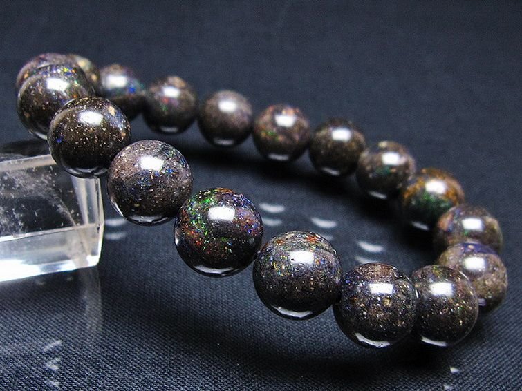 - 銀座東道◆超レア最高級天然ブラックオパールブレスレット 11mm [T249-4568]