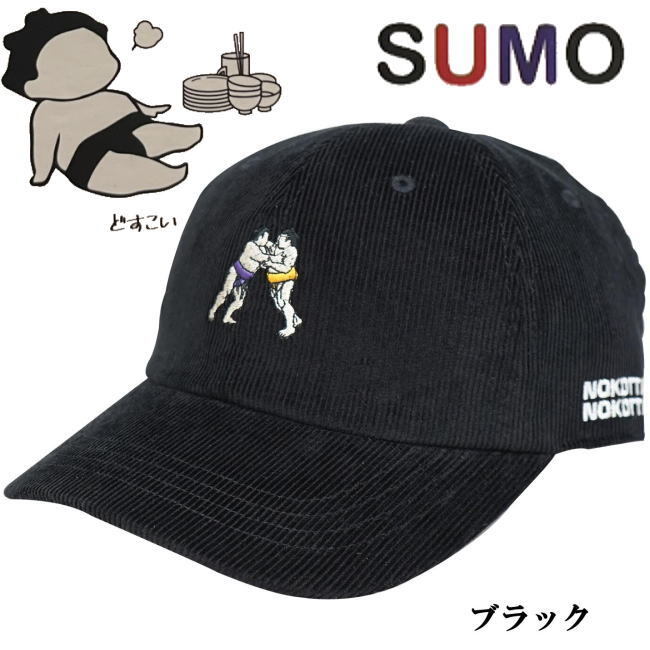 - ブラック SUMO 相撲 すもう どすこい コーデュロイキャップ 国技 お相撲さん メンズ レディース