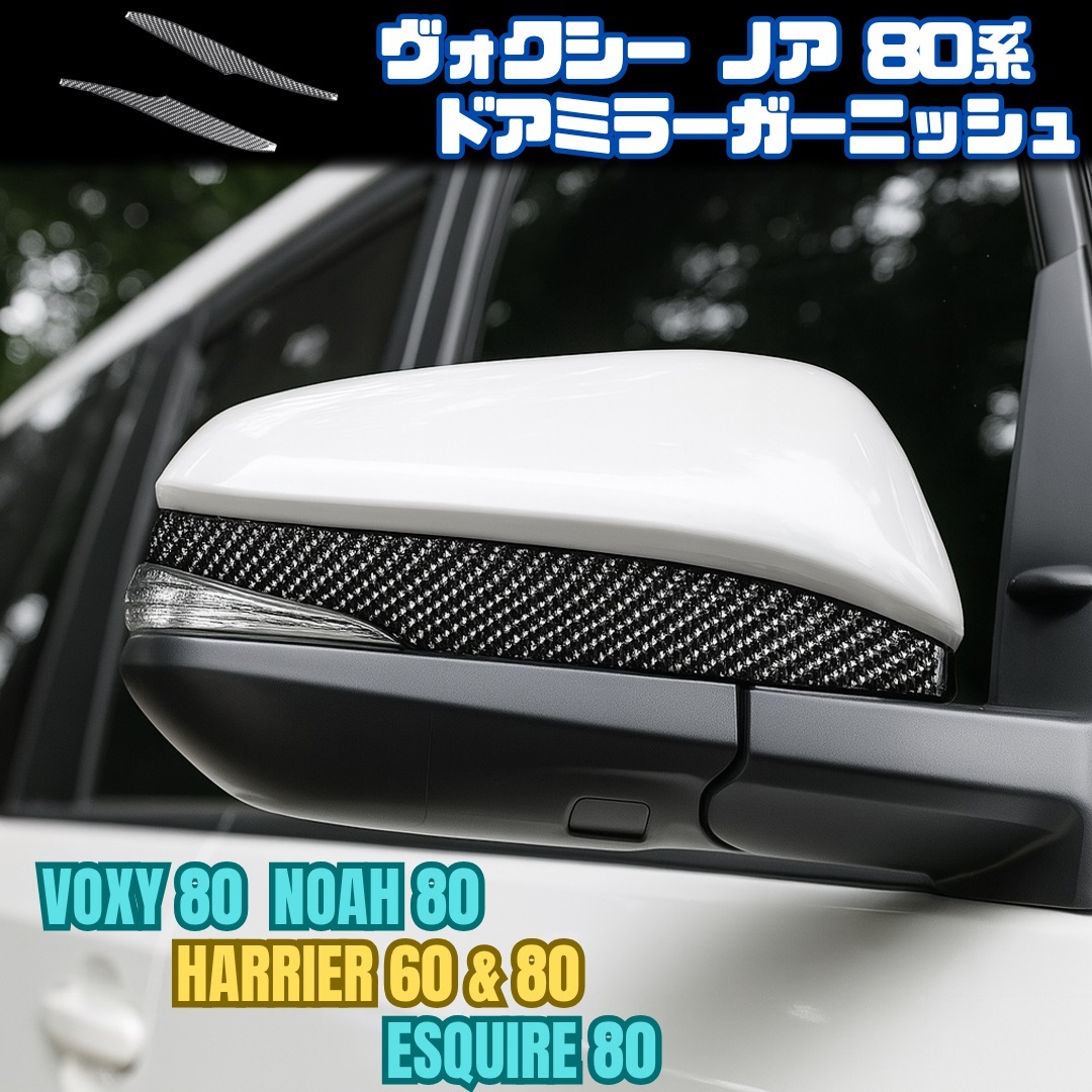 > 【VOXY NOAH 80系】 ドアミラーカバー / カーボン / トヨタ ヴォクシー ノア エスクァイア ハリアー対応 / ガーニッシュ 両面テープ取付