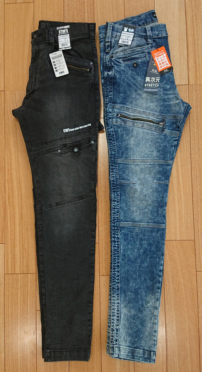 > G.G. 1682-08 デニム カーゴパンツ ミッドインディゴ L STUD'S S1218 デニム パンツ ブラック L ストレッチ 作業服 作業着 ズボン メンズ
