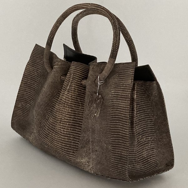 未使用 リザードレザー ハンドバッグ トートバッグ ヌバック ブラウン系 本トカゲ革 エキゾチックレザー
