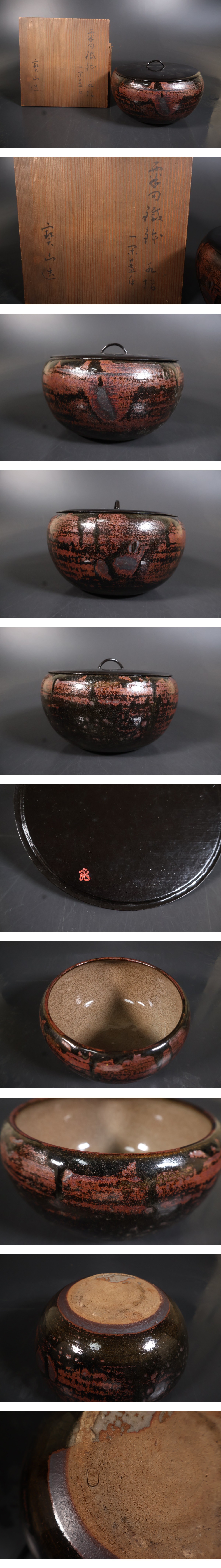 > 【和】(A3563) 時代古作 作家物 飴釉鉢 水指 一閑塗蓋有 共箱有 茶道具
