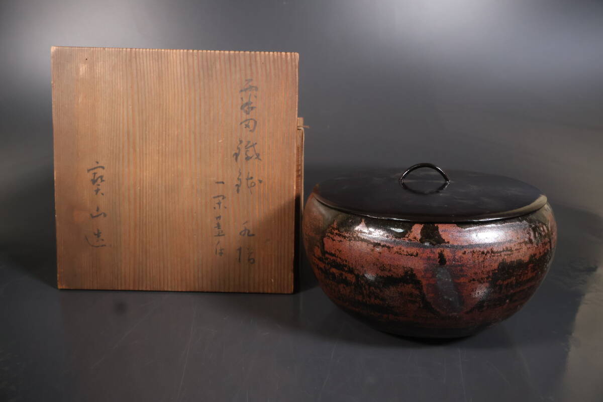 - 【和】(A3563) 時代古作 作家物 飴釉鉢 水指 一閑塗蓋有 共箱有 茶道具