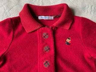 - ファミリア★70★★フリース★きれい赤★胸刺繍★ファスナー開閉★コート★ジャケット★上着★防寒