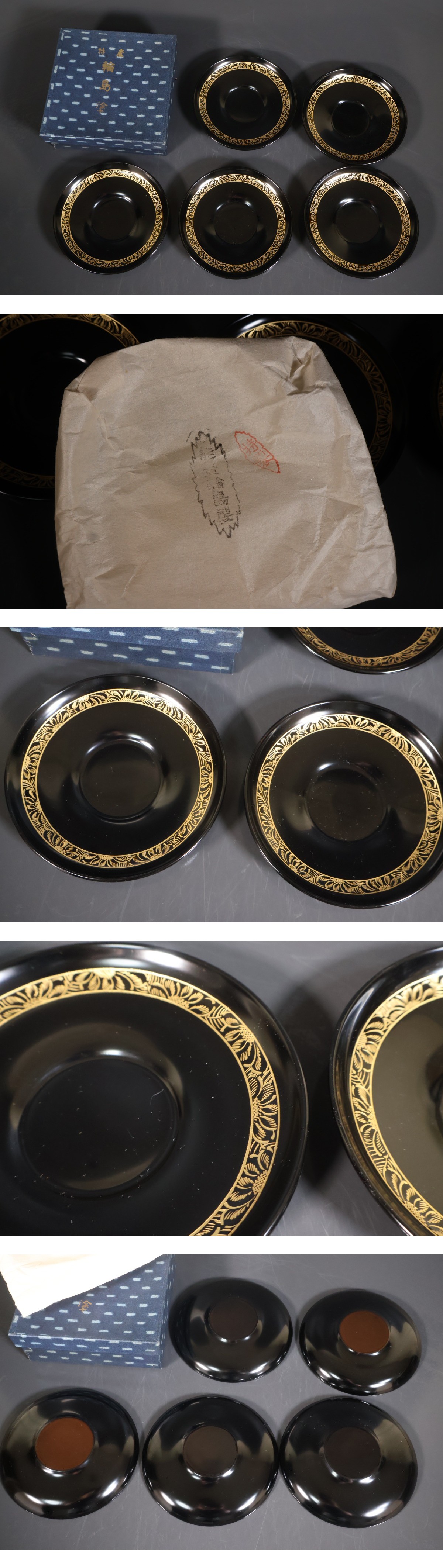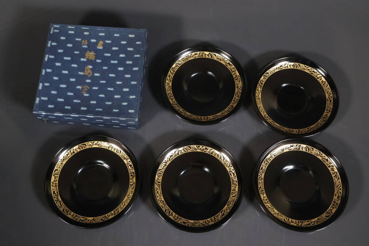 - 【和】(A3569) 時代古作 輪島塗 未使用 輪島塗茶托 木地 紙箱有 茶道具 煎茶