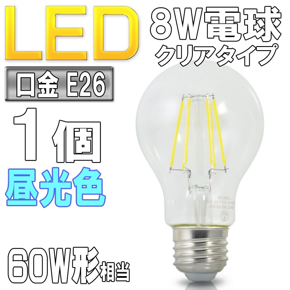 > LED電球 ライト E26 8W 昼光色 裸電球 クリアタイプ 6000k 60W形相当 照明 ランプ 省エネ 節電 エコ スポットライト