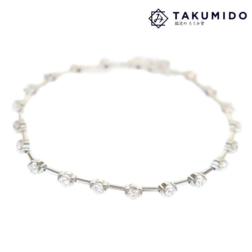 - 代引不可 ダイヤ ブレスレット ホワイトゴールド K18WG ダイヤモンド 2.50ct 総重量9.9g アクセサリー 中古AB 282440