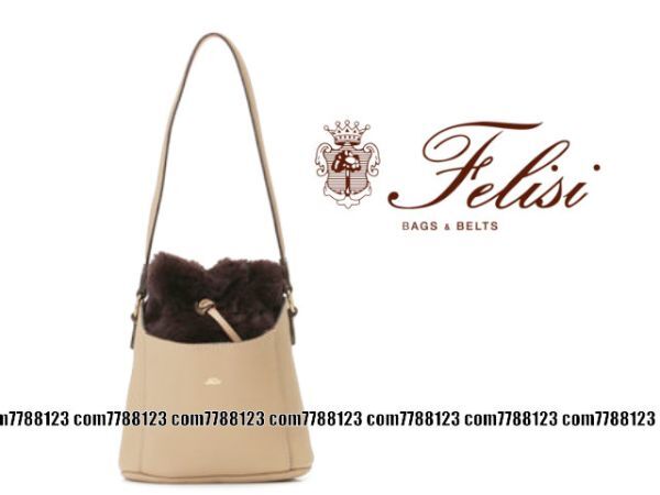 未使用7.5万《Felisi》ショルダー バッグ ボア巾着付 本革 イタリア製 フェリージ ベージュ系 鞄 レディース