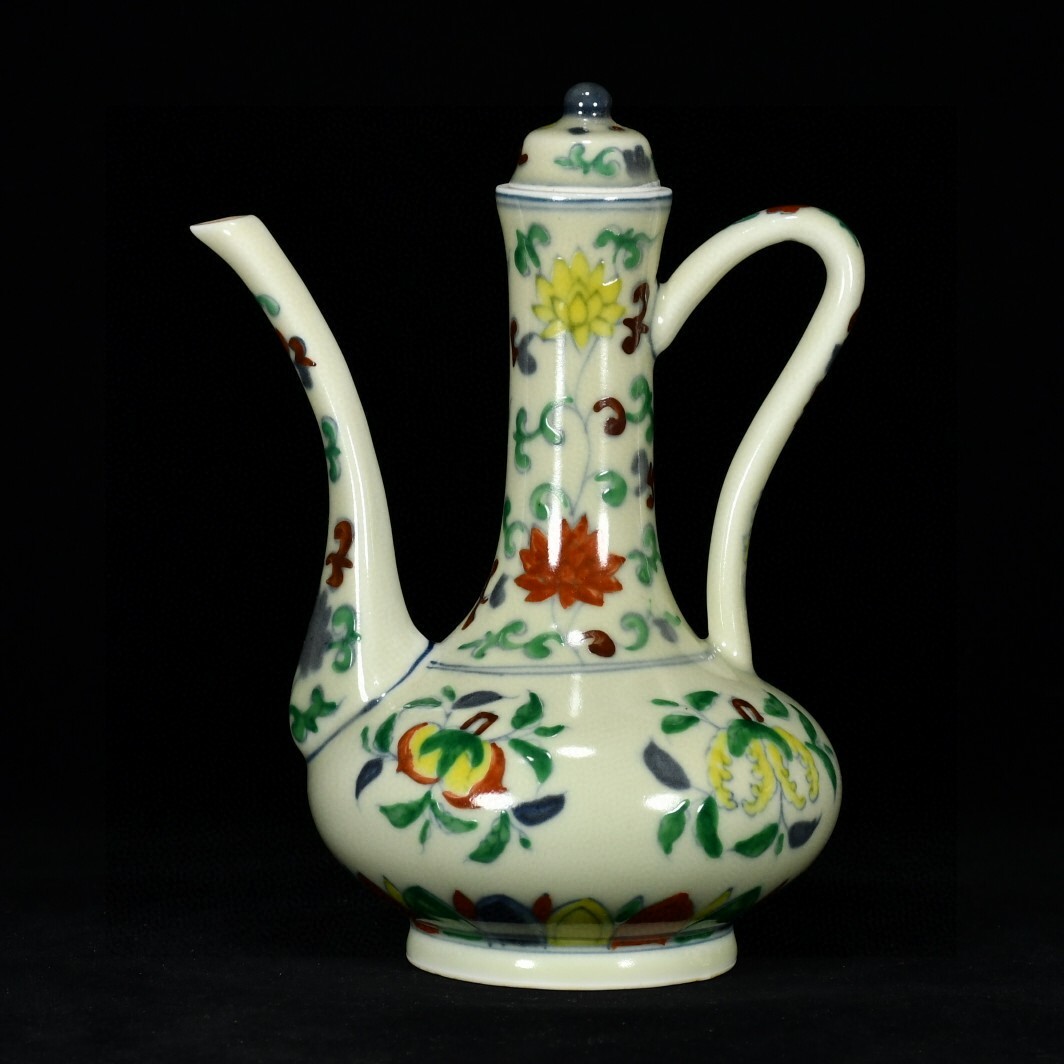 - 『館蔵珍品 明 成化年製款 古陶瓷品 鬥彩 三多紋 執壺 陶芸』稀少珍蔵品 古賞物 貴重物品 収蔵品 中国古美術 時代物 古董品