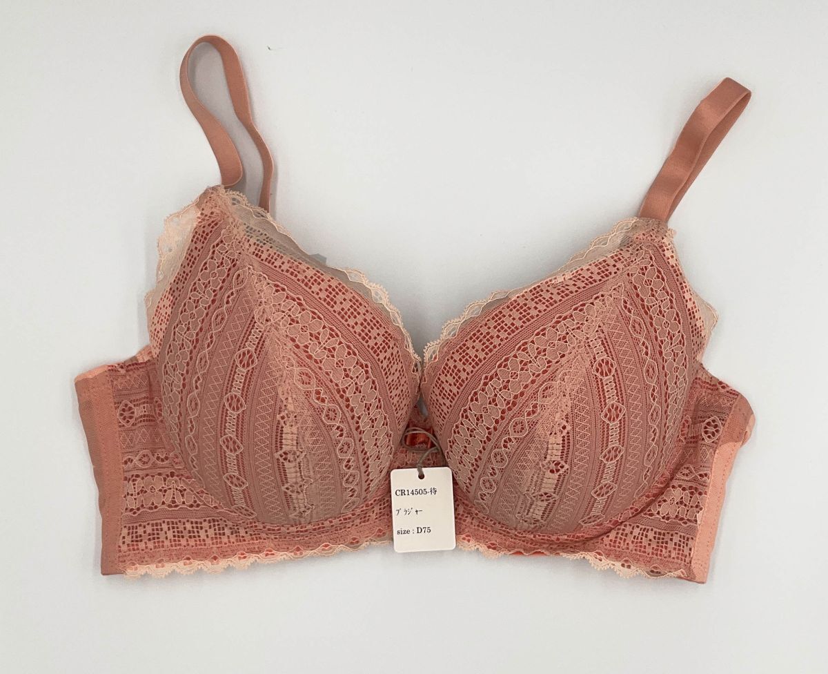 - CR14505 IB⑥【特価】新品 大きい ブラジャーセット 2色2枚組 D75 オレンジ 花柄 レース リボン 脇高 刺しゅう おしゃれ レディース