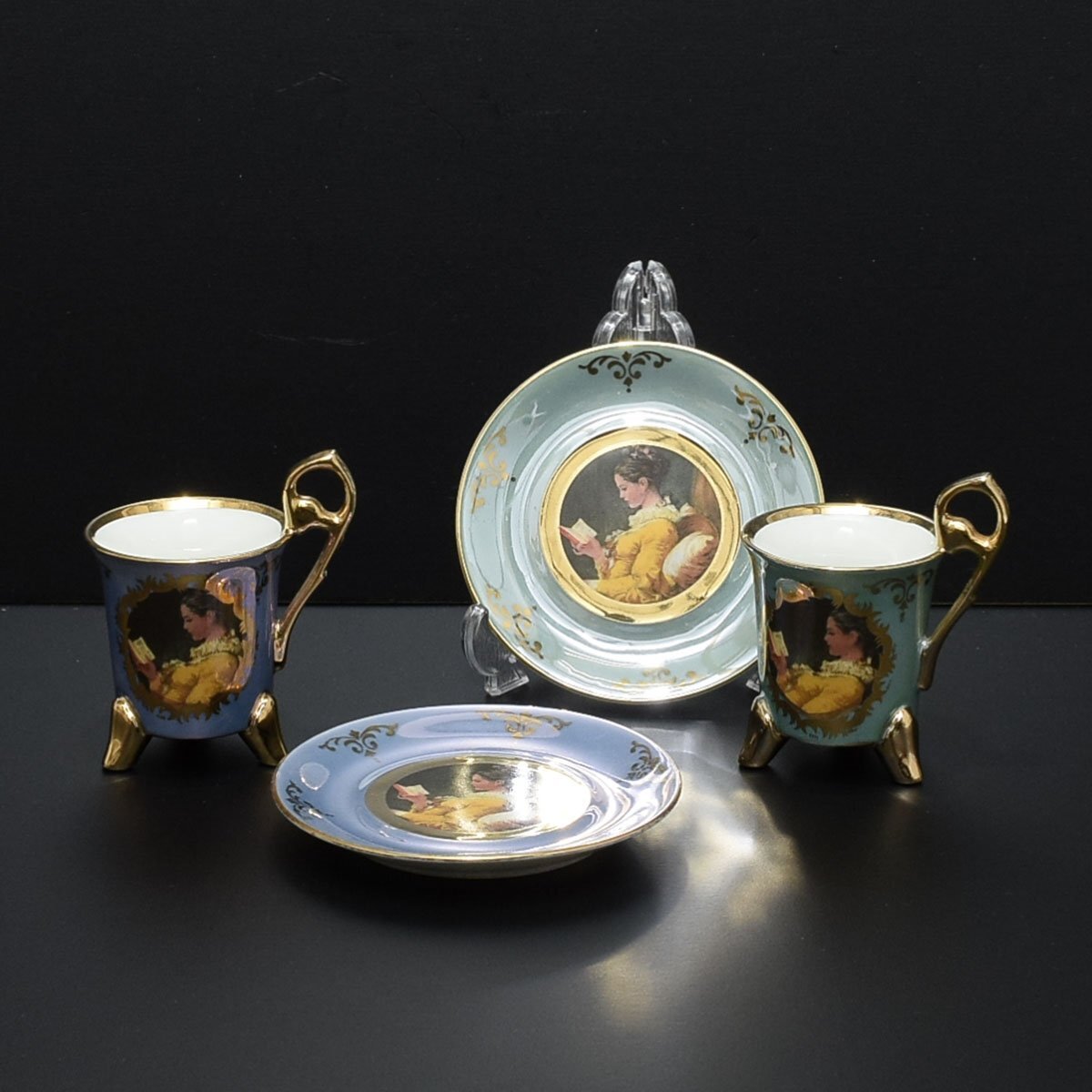 > ◎561520 MIKIMOTO COSMETICS ミキモト A YOUNG GIRL READING デミタスカップ&ソーサー 2客