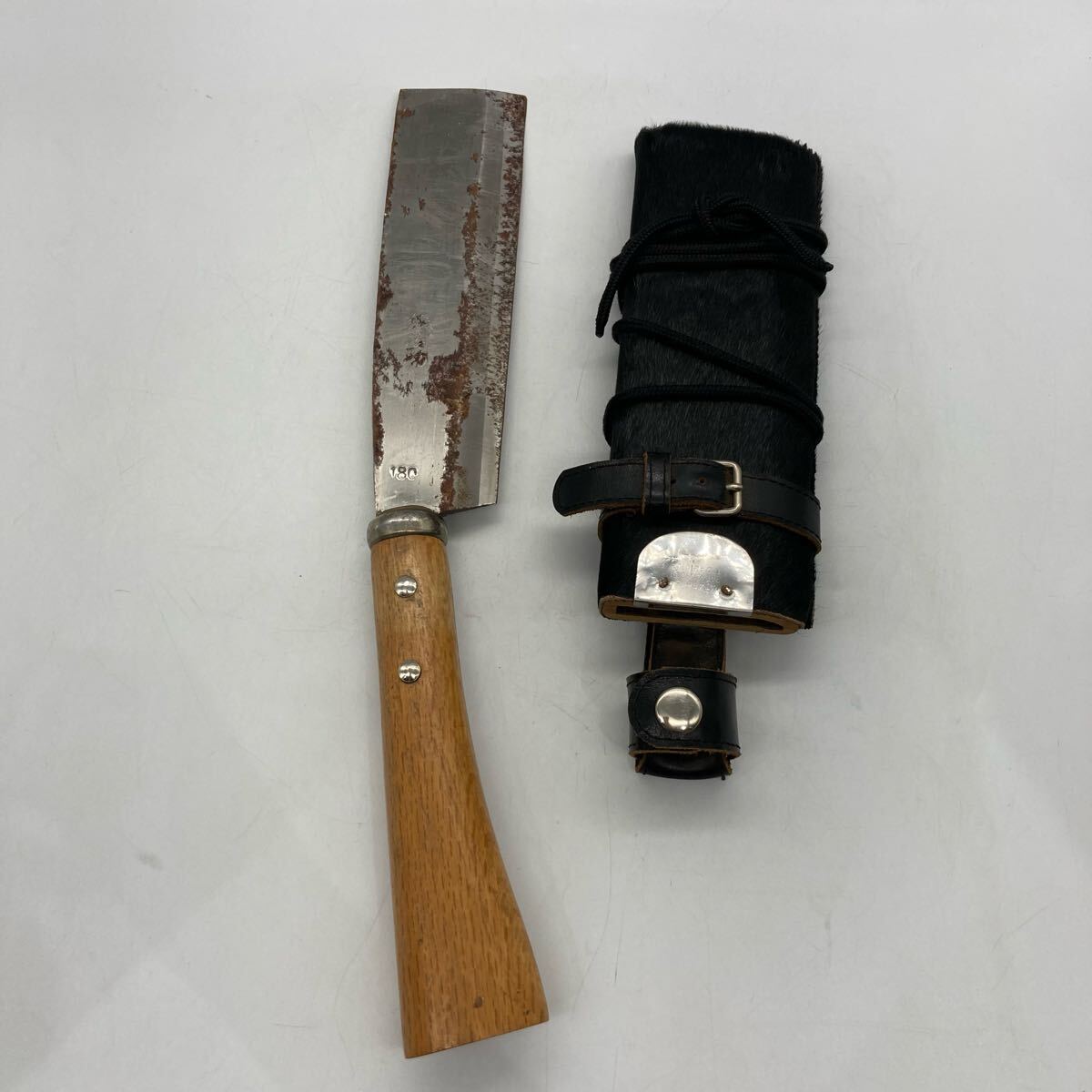 > M1013707N ナタ 鉈 古道具 大工道具 在銘 鍛治助 手打ち鋼付 鞘鉈 鞘付鉈 薪割り アウトドア 手斧 キャンプ 職人 当時物 中古品 現状品