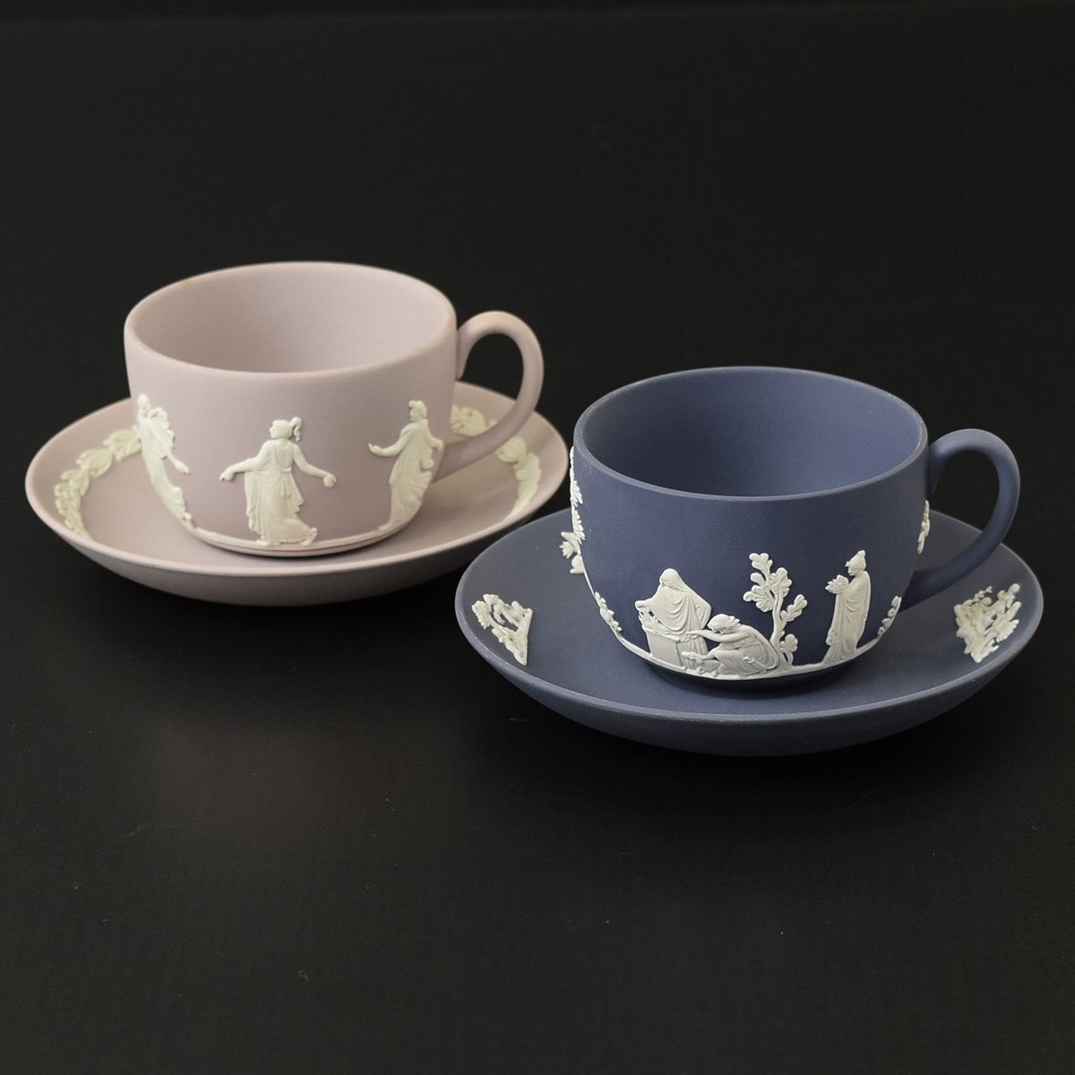 - ◎514813 WEDGWOOD ウェッジウッド ジャスパー ライラック ポートランドブルー カップ&ソーサー 2客セット