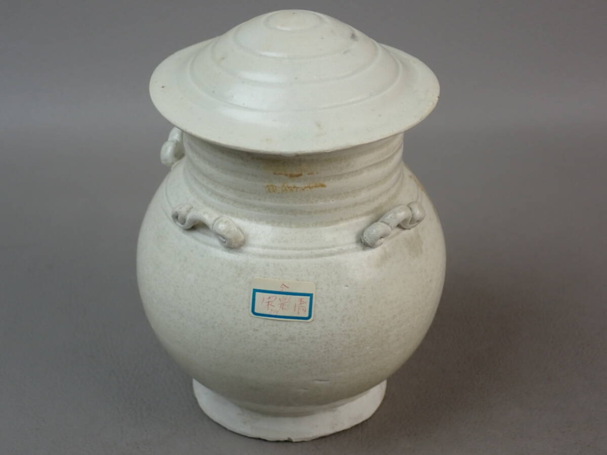 - 【骨董・茶道具】★中国古玩 宋代★★影青蓋付四耳壷 gp110wb 黒高麗 花道 華道 土器