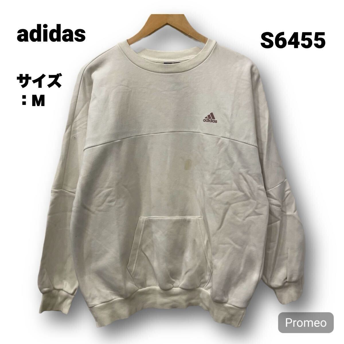 > 【S6455】 adidas アディダス スウェット トレーナー サイズM ホワイト 白 胸ロゴ プリントロゴ レディース トップス 最落なし 古着
