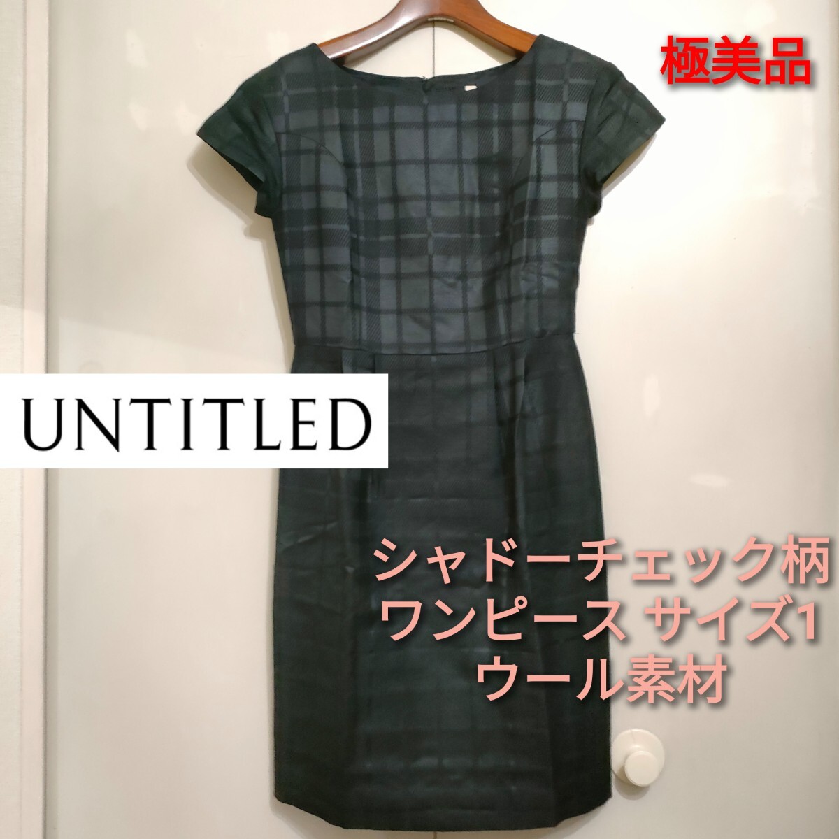 > 【極美品】アンタイトル ウール素材ワンピース 半袖 チェック柄 ひざ上 Sサイズ UNTITLED ブラック 黒 サイズ1