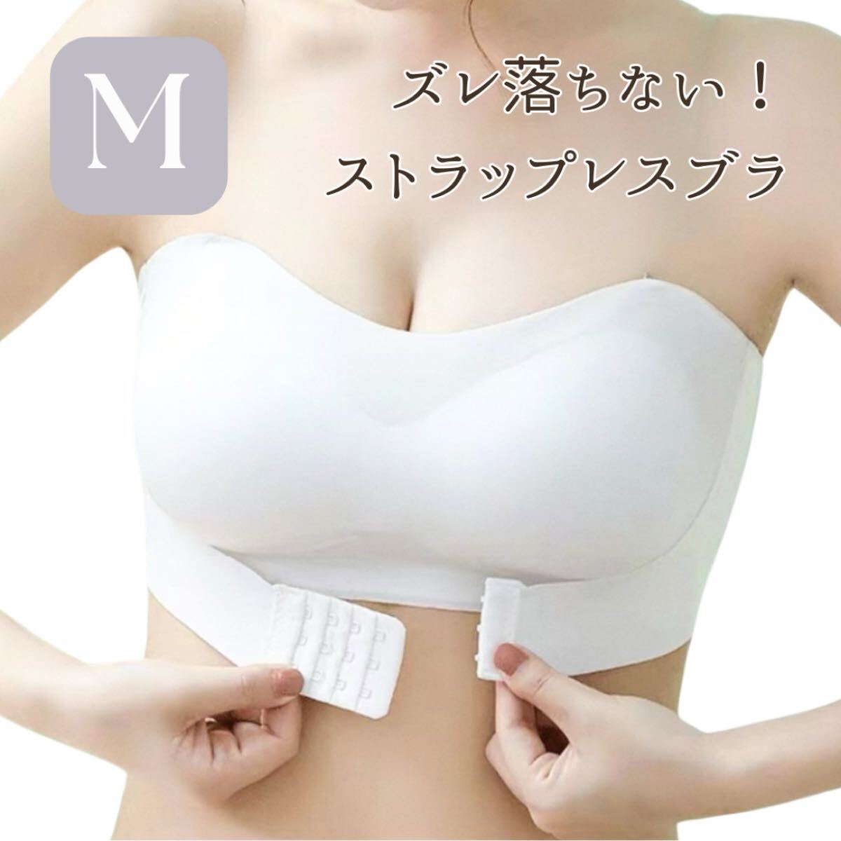 - ストラップレス ブラ ノンワイヤー チューブトップ シームレス ホワイト M