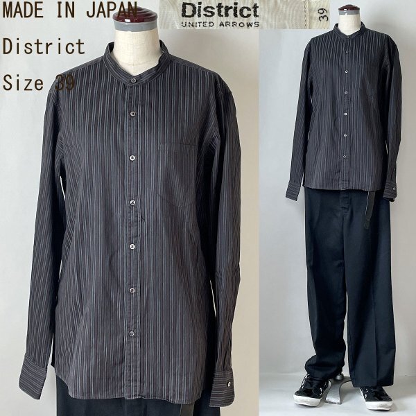 - 【日本製 国内正規品】 District UNITED ARROWS ディストリクト ユナイテッドアローズ バンドカラー ストライプ柄 長袖 シャツ サイズ39