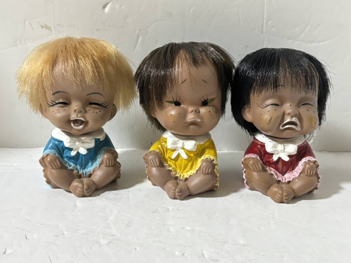 - 日本製 当時物 泣き笑い人形 モンナニ人形 赤ちゃん ソフビ 3体 まとめて/ビンテージ アンティーク レトロ 昭和レトロ 玩具 雑貨/QH