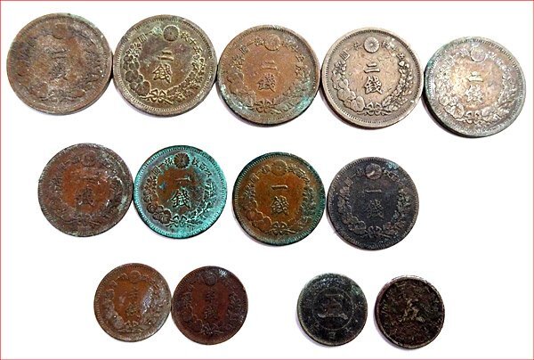 ●明治6年~明治14年 古銭 一銭 二銭 五銭 半銭 13枚分