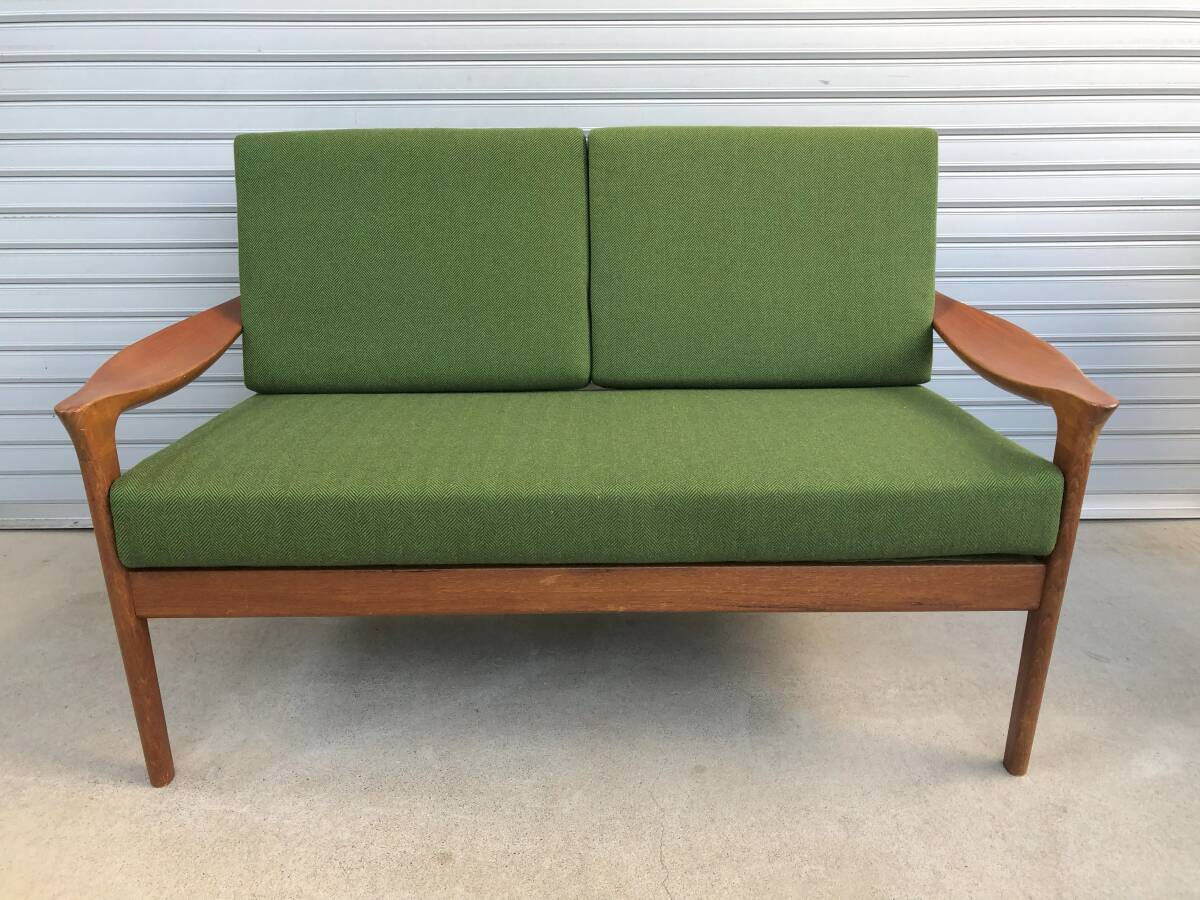 - 北欧ビンテージ家具 2Pソファ 2シーター デンマーク チーク材 カバーリング ヴィンテージ 幅127,5cm/奥行70cm/高さ79cm/座面の高さ約42cm