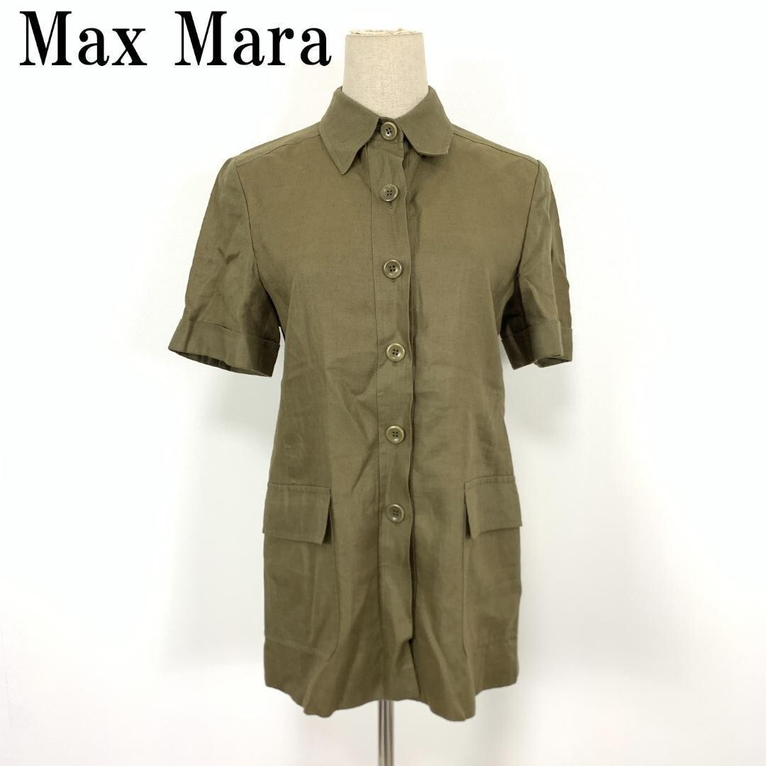 - LA7562 マックスマーラ Max Mara 麻100% シャツジャケット リネン ロング 半袖ジャケット カーキ 38