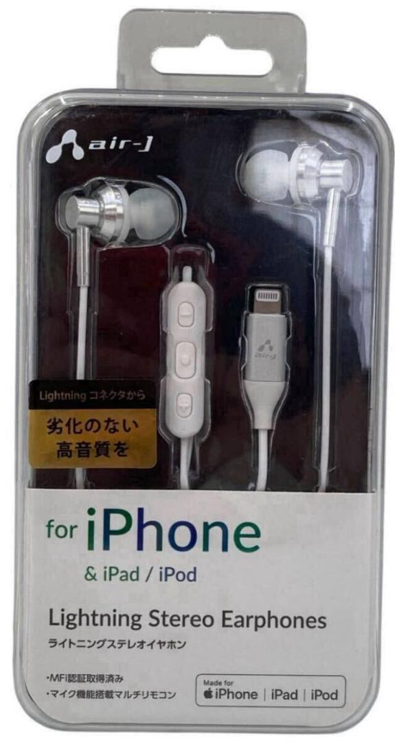 - air-J MFi認証ハイレゾ ライトニング ステレオイヤホンマイク ホワイト