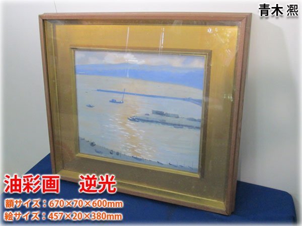 > 青木凞 水彩画 「逆光」 8号 額付 1968年日展水彩作家協会委員展出品作品 新世紀美術協会会員/日展水彩作家協会委員 【長野発】