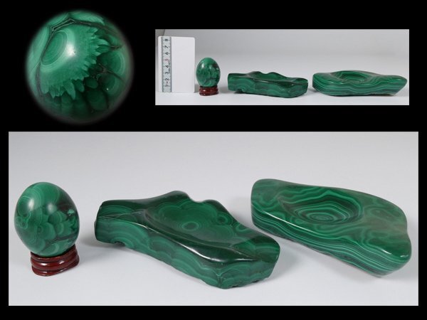 - g465 マラカイト/孔雀石 3点まとめて 総重量約1206g 卵型 他 原石 鑑賞石 天然石 【白蓮】10