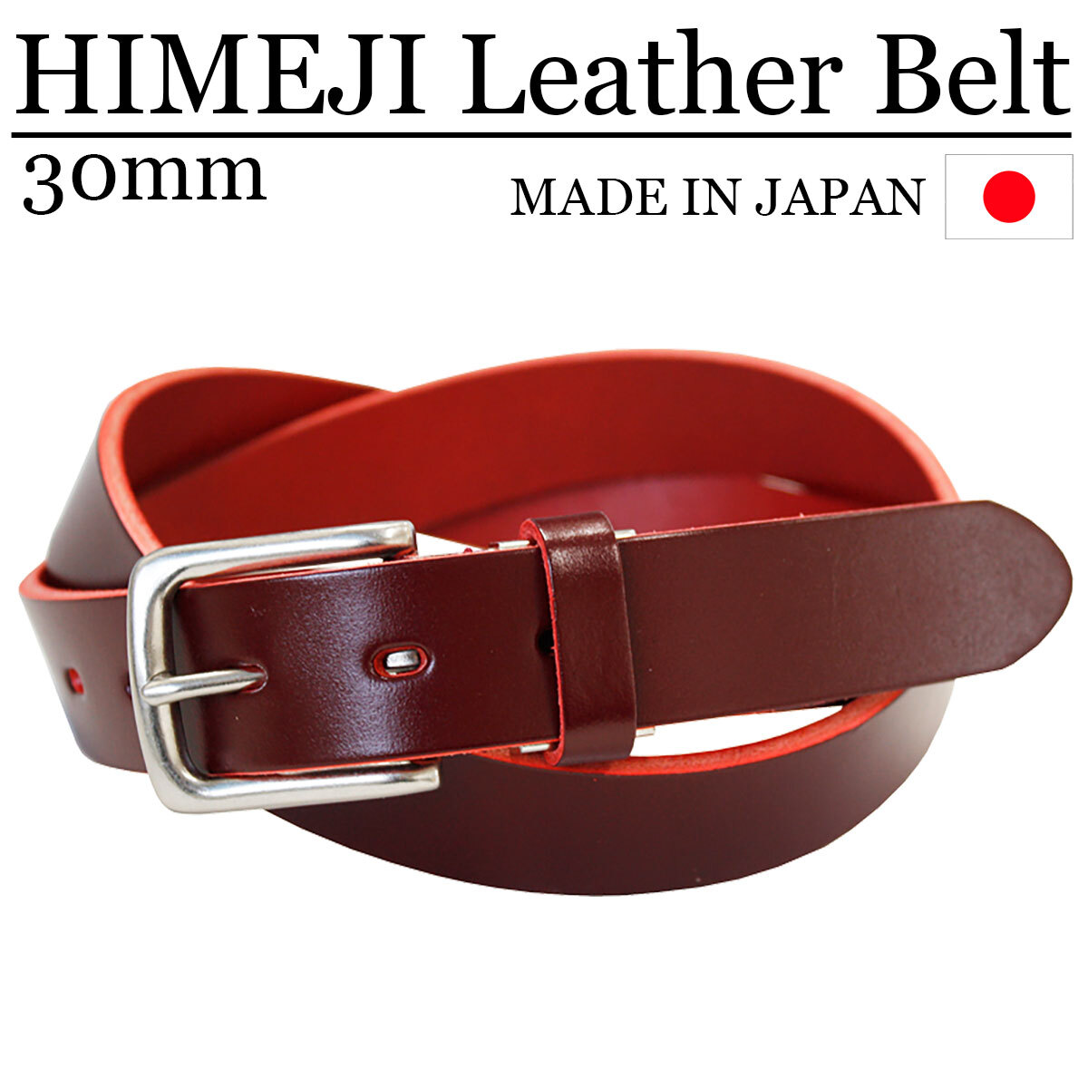 - 【 日本製 】レザーベルト 姫路レザー 本革 幅 30mm 3cm サイズ調節可能 日本タンナーズ協会 MADE IN JAPAN プレゼント ギフト レッド