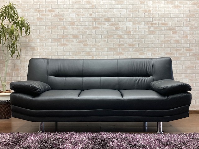 - ■送料無料(北海道・東北・沖縄は除く)■ 革張りソファーベッド/ ブラック/ ゆったりサイズ/ 新品