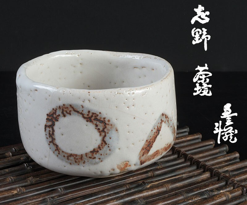 - 茶道具 人間国宝 荒川豊蔵作 志野茶碗 仕覆付 共箱二重箱 MRQK