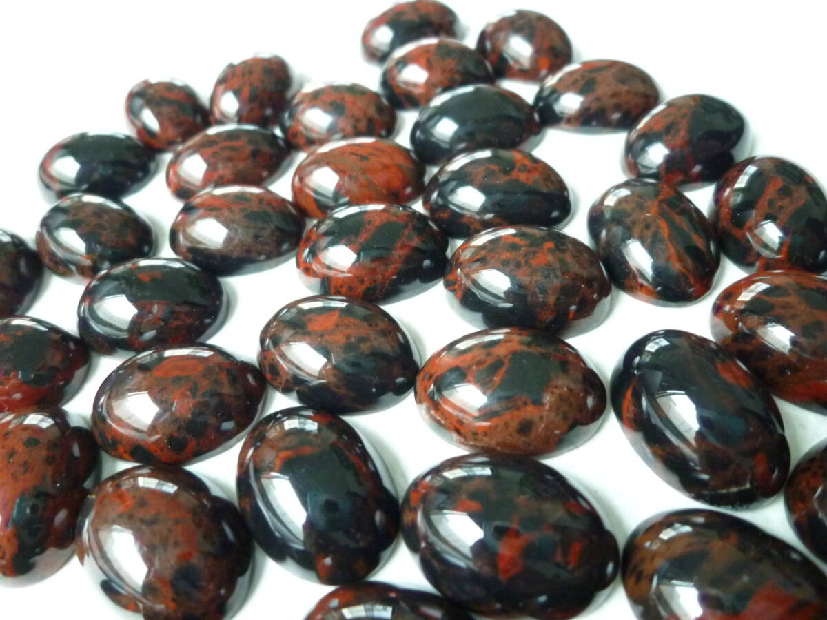 - 50個セット マホガニーオブシディアン 約13×18mm オーバルカボション まとめ 大量 赤腑黒曜【匿名配送 送料込】