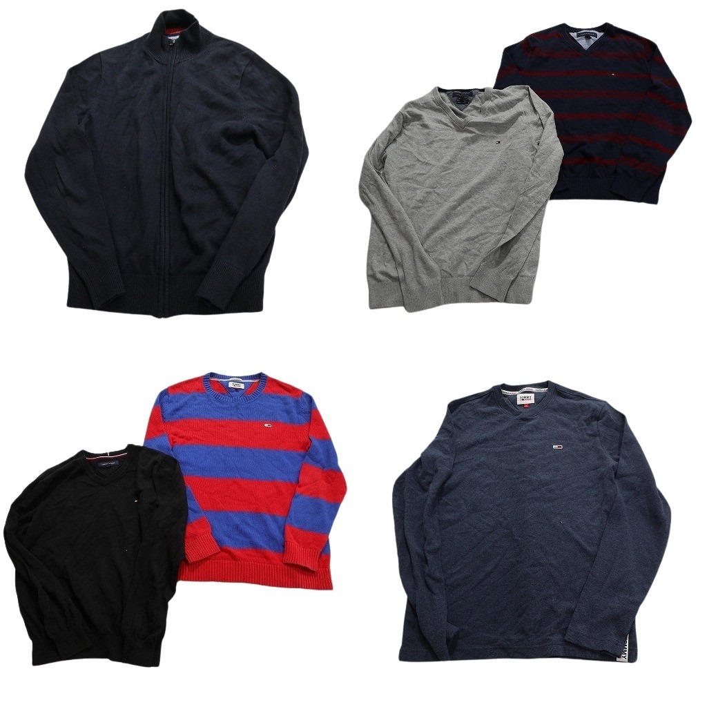 - 古着卸 まとめ売り トミーヒルフィガー セーター 6枚セット (メンズ XS /S ) Vネック ボーダー フルジップ ブラック NC2926 1円スタート