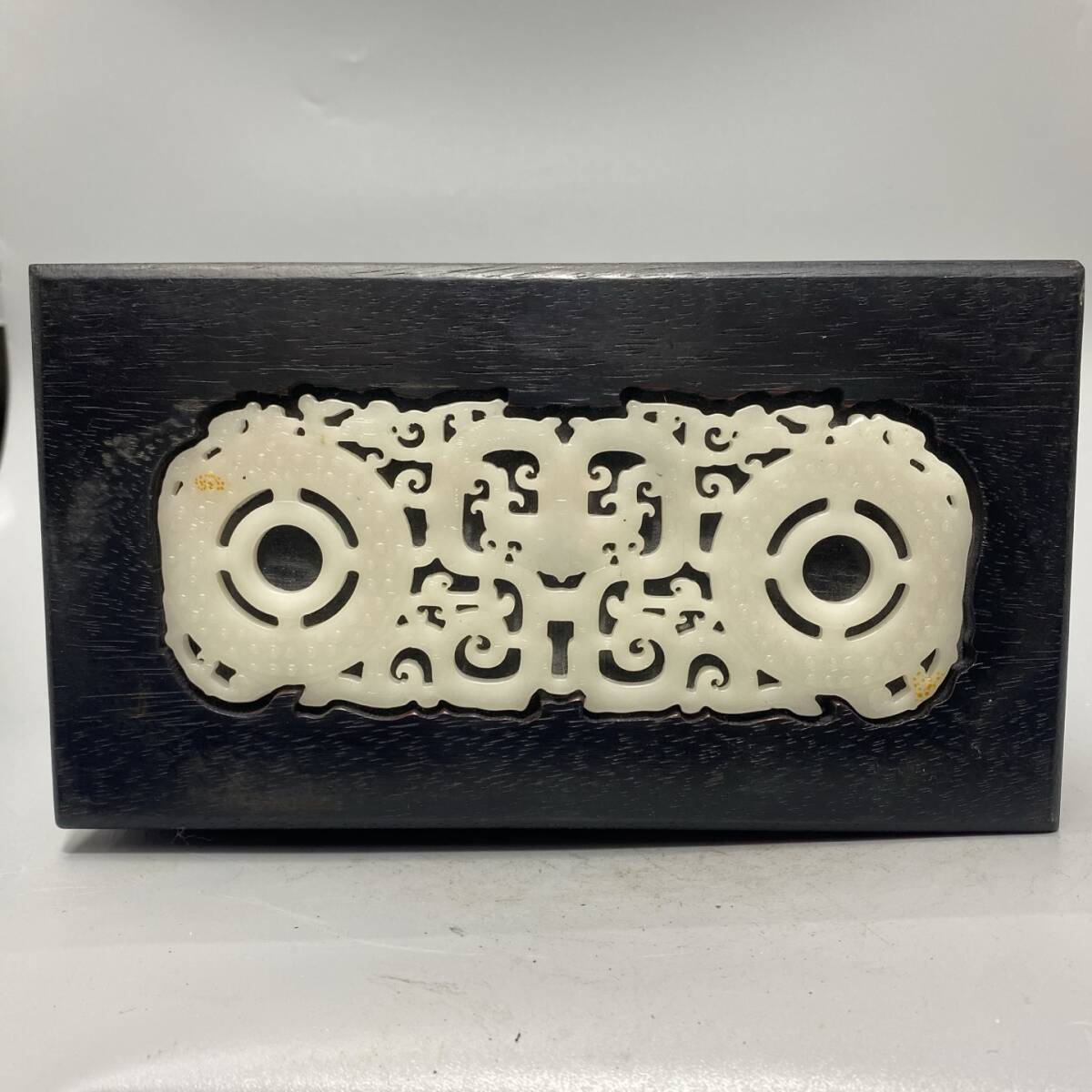 - ▽鴻▽黑檀木製 玉嵌 盒子 首飾盒 収納盒 置物 賞物 古賞物 古董品 時代物 稀少珍品 中国古玩 中国古美術