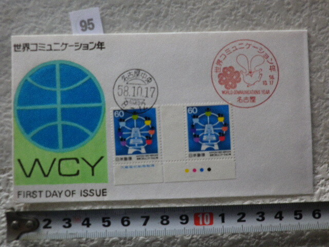 - FDC 世界コミュニケーション年 1983年 2貼2消 銘板・カラーマーク付 解説書有 松屋●95●