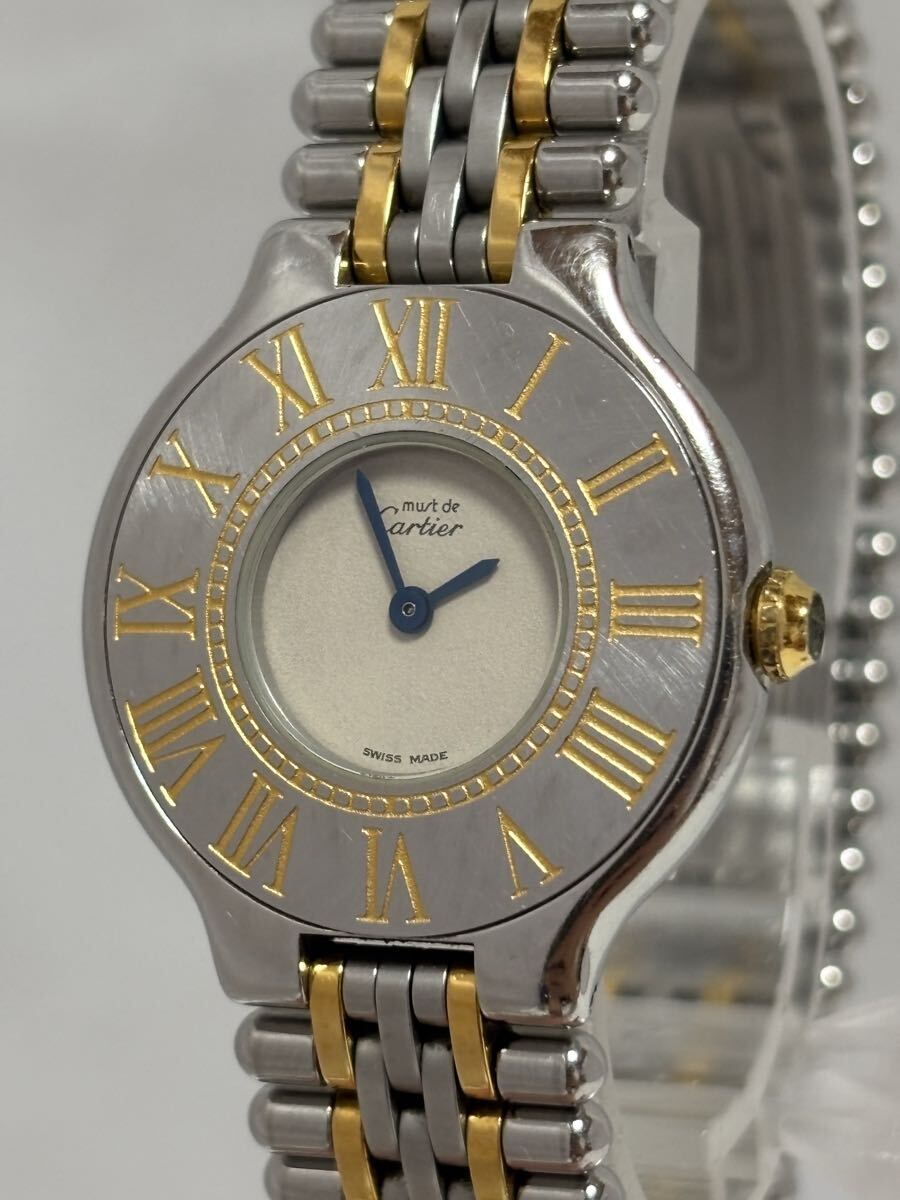 - 【228-2】1円〜【稼働品】Cartier カルティエ マスト21 ヴァンテアン クォーツ 純正ベルト アイボリー レディース 同梱不可