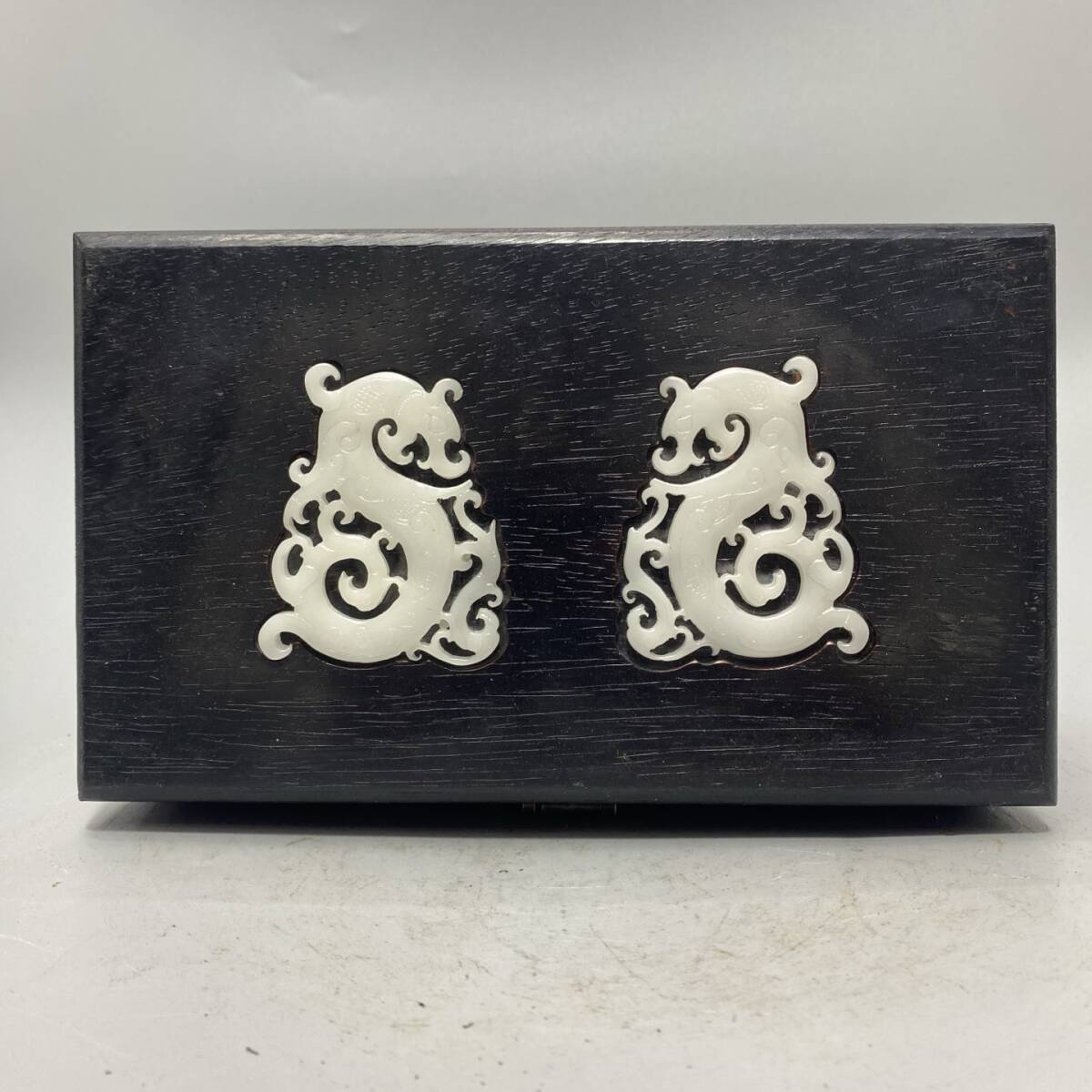 - ▽鴻▽黑檀木製 玉嵌 云龍紋 首飾盒 収納盒 置物 賞物 古賞物 古董品 時代物 稀少珍品 中国古玩 中国古美術