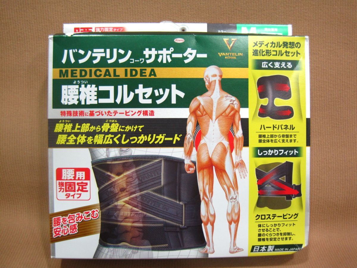 - M3-488■即決 未使用品 箱折り中身出し発送 バンテリンコーワ サポーター 腰椎コルセット 腰用強力固定タイプ 男女兼用 M ふつう 65~85cm