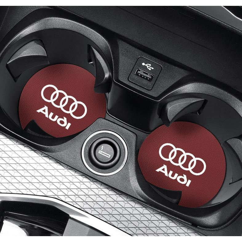 - アウディ 車用 カップパッド ドリンクホルダー コースター 専車ロゴ ロゴ入り 丸型 車用ノンスリップ レザー 2枚セット
