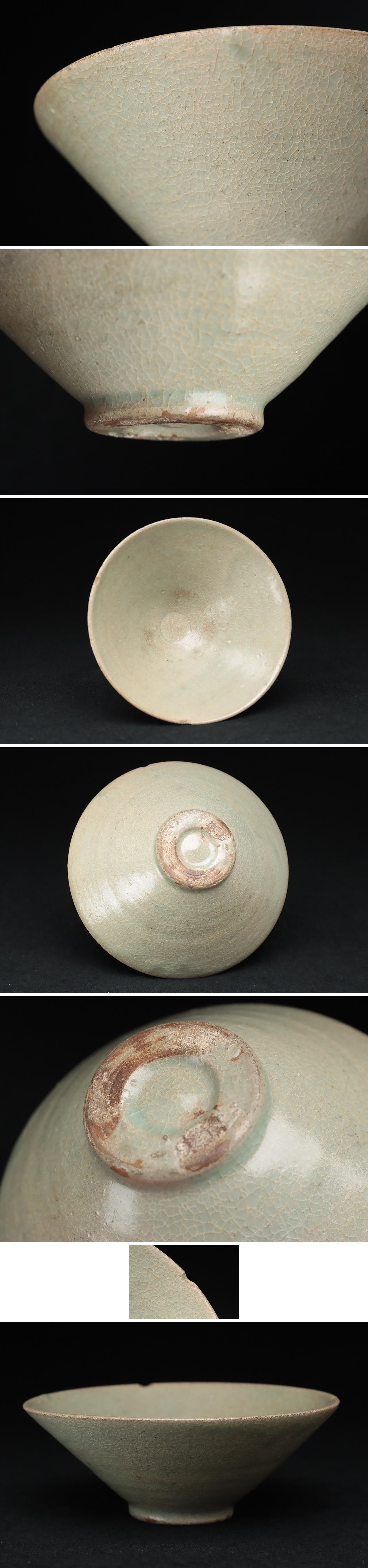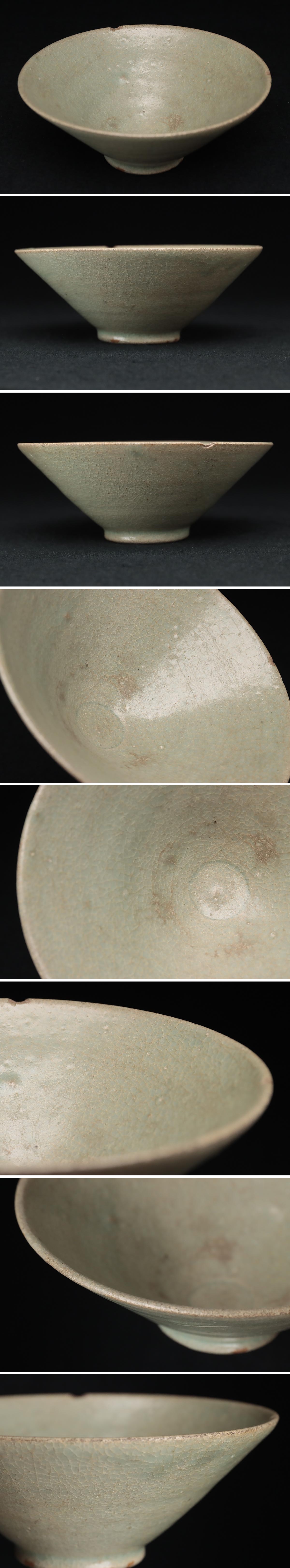> FC725 中国美術 青磁茶碗・青釉斗笠碗 径14.5cm・青瓷碗・青瓷盞 中国古陶磁 中国古玩 古美術 茶道具