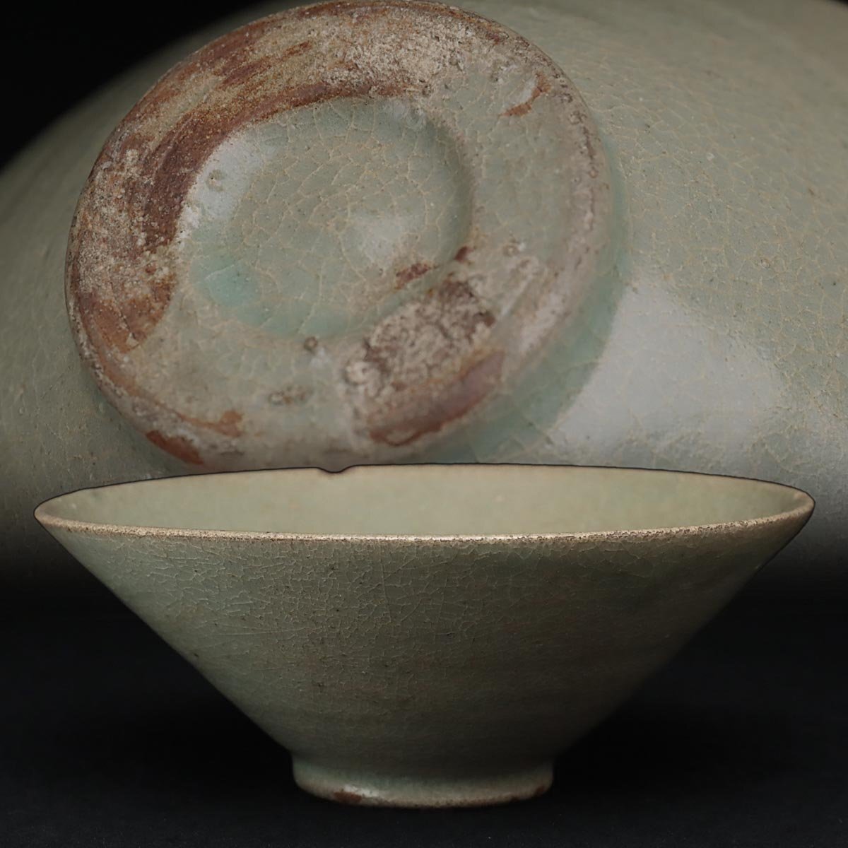 - FC725 中国美術 青磁茶碗・青釉斗笠碗 径14.5cm・青瓷碗・青瓷盞 中国古陶磁 中国古玩 古美術 茶道具
