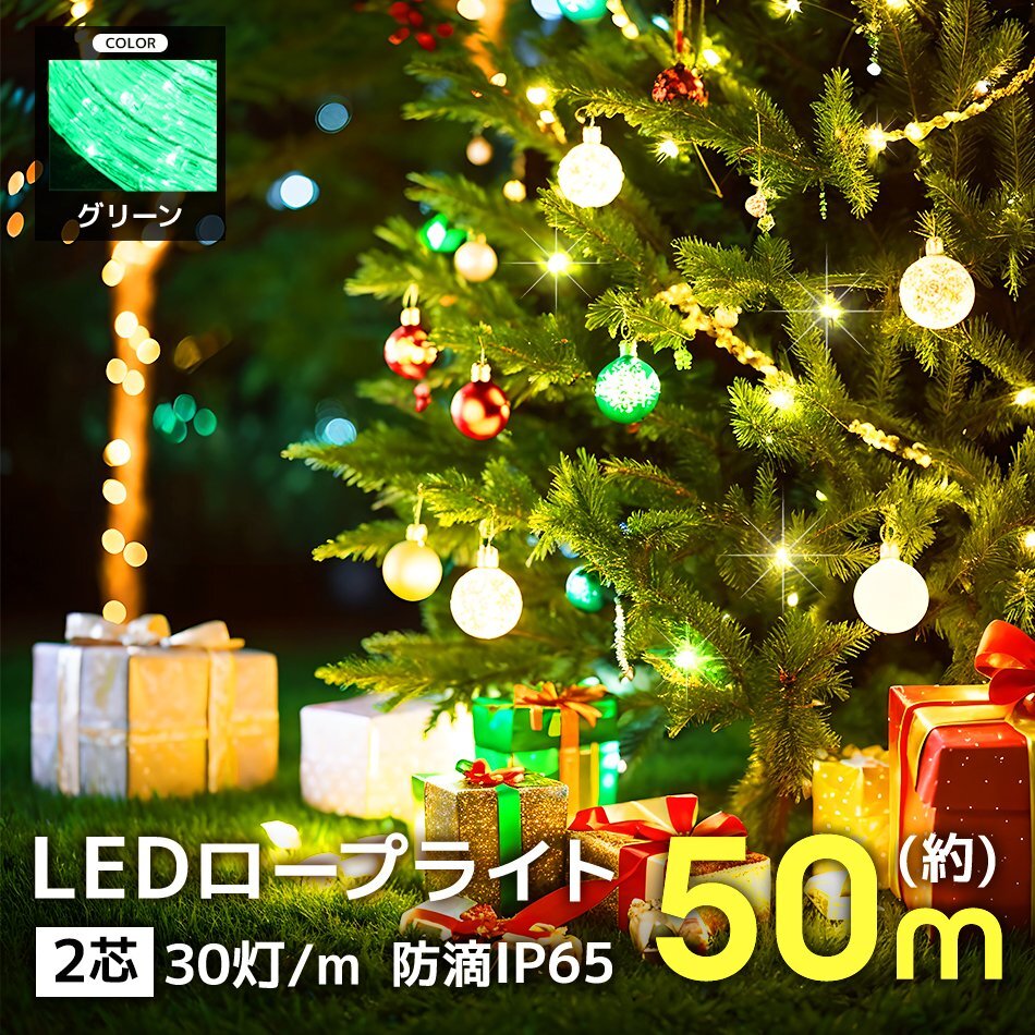 - イルミネーション LED ライト 屋外 クリスマス 計1500球 50m カット可能 防水 チューブライト イルミネーションライト 電飾 グリーン