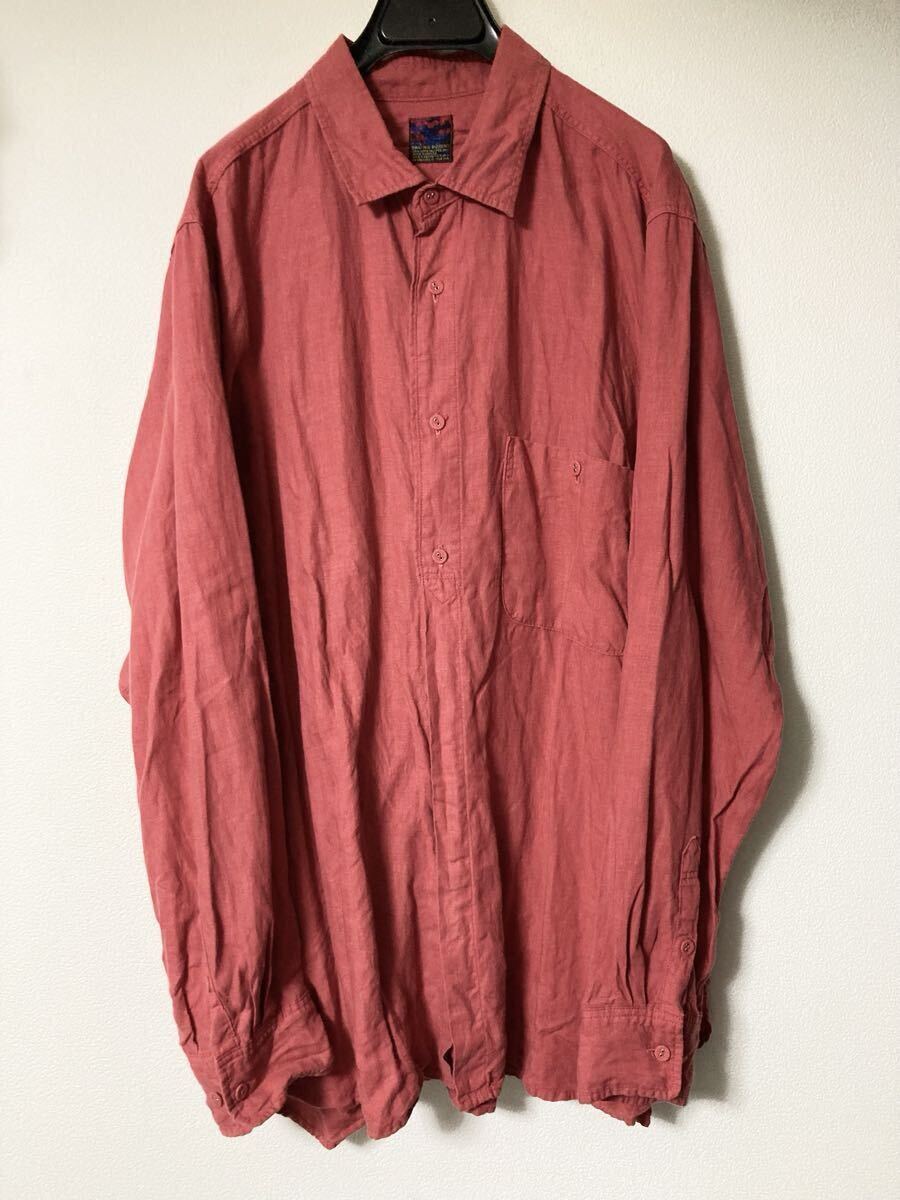 - BRU NA BOINNE 部分比翼 リネンシャツ ルーズフィット 煉瓦系 赤 同生地ボタン ジャケット パンツ ブルーナボイン