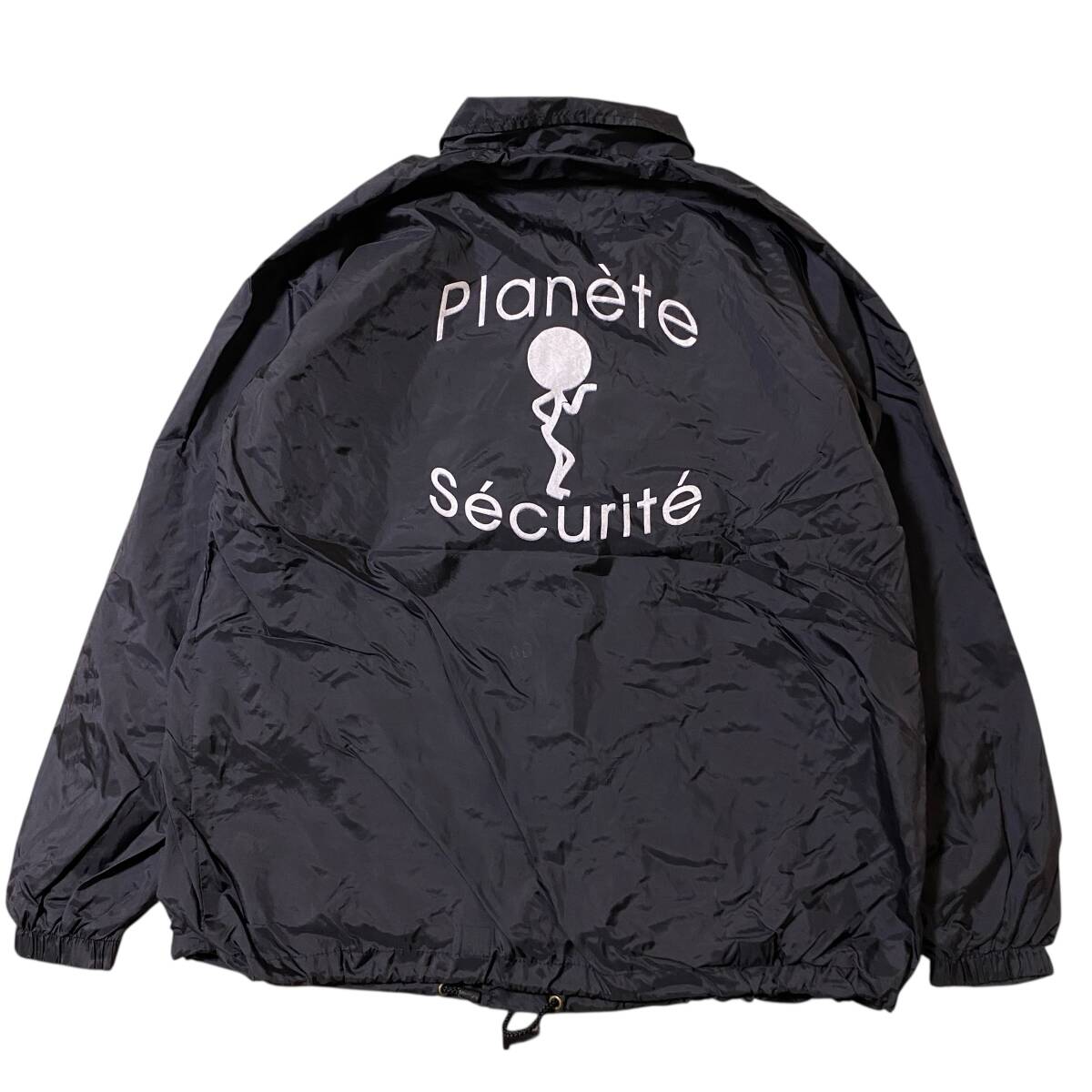 - ユーロ古着 コーチジャケット ナイロン ジャケット ブラック プリント Lサイズ 【H367】
