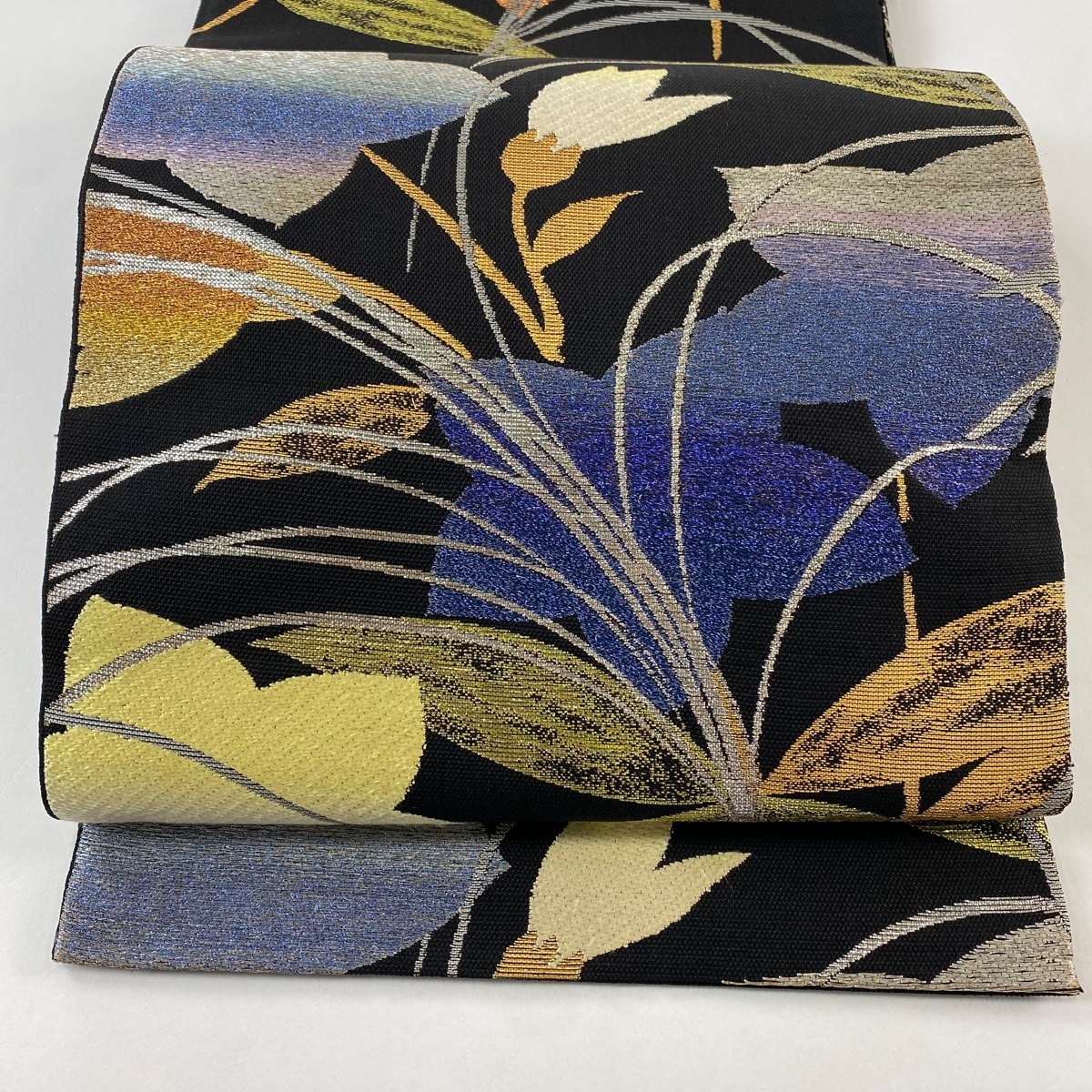 - 袋帯 逸品 龍村平蔵 落款 光悦秋草文 箔 銀糸 黒 お太鼓柄 正絹 【中古】
