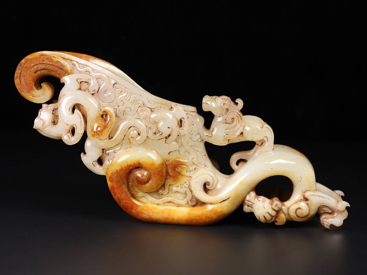 - ▽鴻▽漢朝時代 高古玉 和田玉彫 龍杯 時代物 中国古美術 骨董品