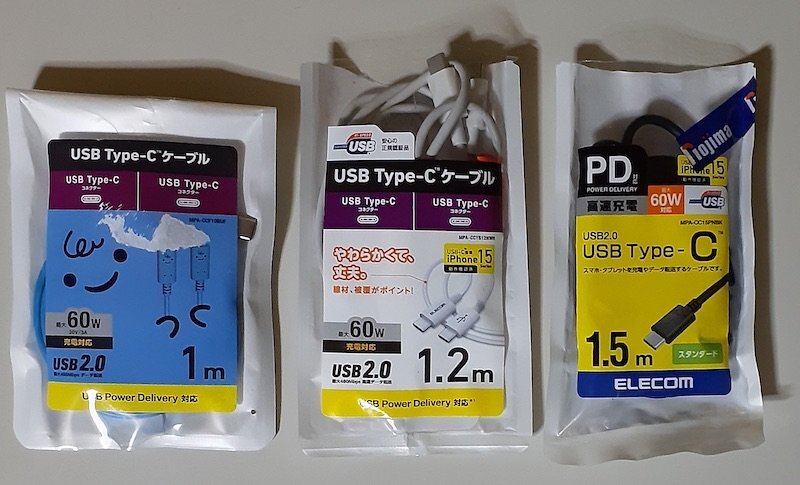- 6797 MPA-CCF10BUF MPA-CCYS12NWH MPA-CC15PNBK ELECOM USB Type-Cケーブル 3本まとめて USB2.0 PowerDelivery 60W 高速充電対応