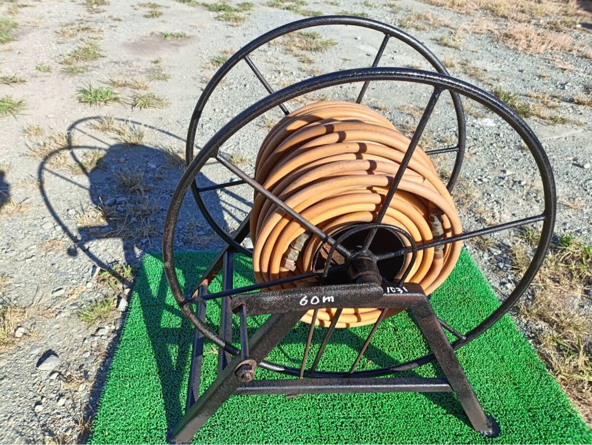 - 1031福岡県中古/ホースリール 農業用 噴霧器用 動噴用 ホース 農機具 散布 引取歓迎 長さ60m+